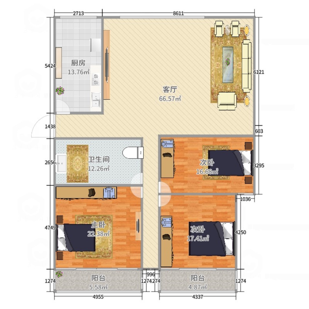 3室2廳1衛(wèi)