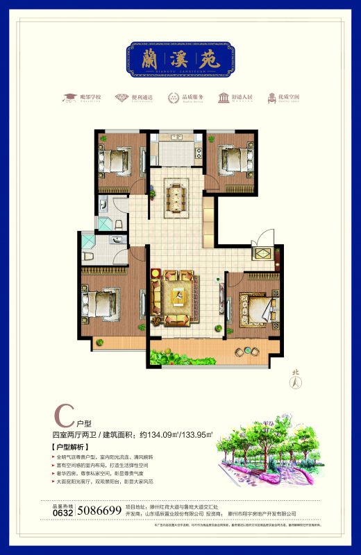 C戶型 4室2廳2衛(wèi) 建面:134m2