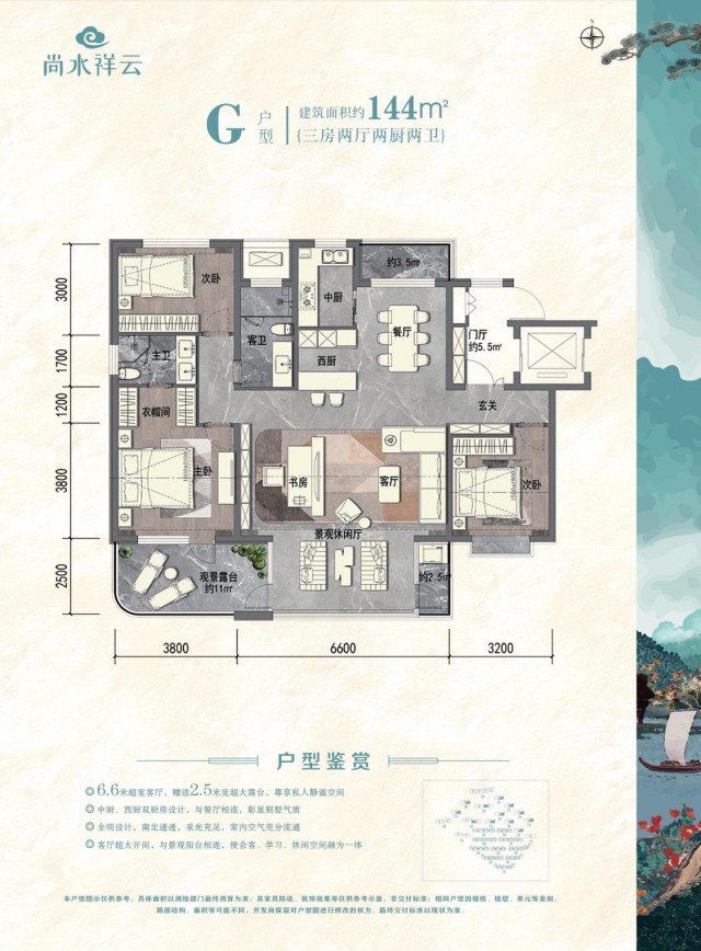 項目是以14棟11層、1棟9層、1棟10層寬景高層洋房與10棟4層多層疊加復(fù)式為主的高端產(chǎn)品組成,戶型引入6.6米大橫廳及寬景陽臺設(shè)計,明廚明衛(wèi),南北通透,每戶獨享私家露臺,在風景中休憩,盡享大氣愜意生活。