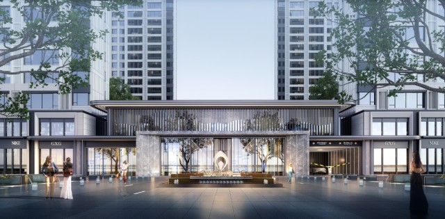 興滕·未來城項目主入口,作為歸家禮序第一站,融合了建筑學(xué)、環(huán)境學(xué)、風(fēng)水學(xué),以提升人居環(huán)境的精神愉悅,渲染歸家的尊崇儀式感。