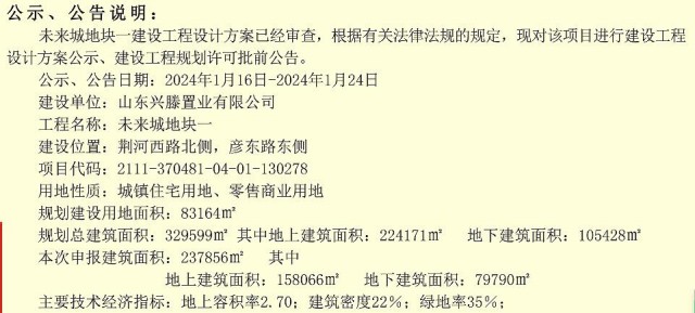 興滕·未來城地塊一建設工程設計方案公示、建設工程規(guī)劃許可批前公告