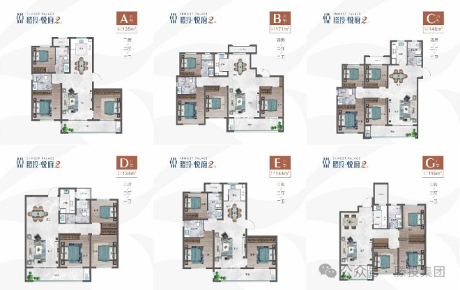 滕投悅府二期項目為廣大業(yè)主精心打造了更符合當下市場潮流、新時代居住理念的7種精品戶型, 建筑面積約為116~171㎡,功能三到四房,既有適合新婚燕爾的愛巢,也有能供三代同堂共享天倫又為年輕人提供充足私人空間的新家園。朗闊布局,通透舒適,滿足人生不同階段的生活需求;人性化同層排水系統(tǒng),營造質(zhì)感愜意的居家環(huán)境;大開間、大視野、大采光面的考究設(shè)計,書寫有格局、有氣度的居住范本。