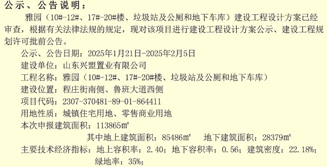 雅園項目建設(shè)工程設(shè)計方案公示、建設(shè)工程規(guī)劃許可批前公告