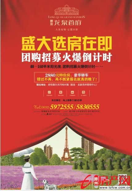 滕投·龍泉首府4月19日盛大選房,2880元特價房,豪華轎車,在不抓緊報名,就真的晚了。